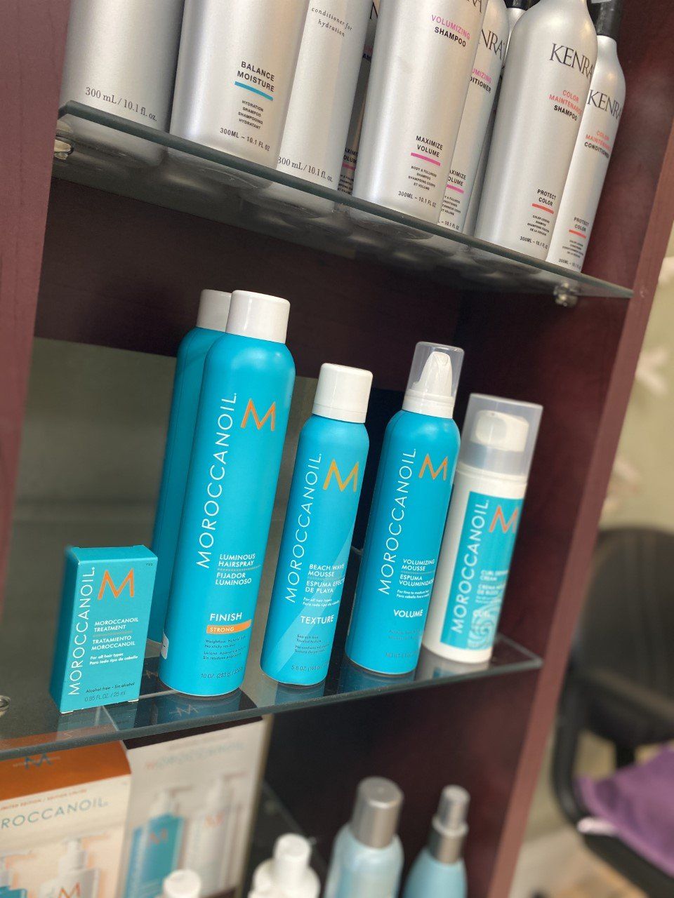 You can purchase products for your hair from well-known brands like Moroccan Oil and Kenra at Full Service Station. We also offer makeup manufactured by glo Minerals. We are certified in All Natural hair products and Pravana Color.
